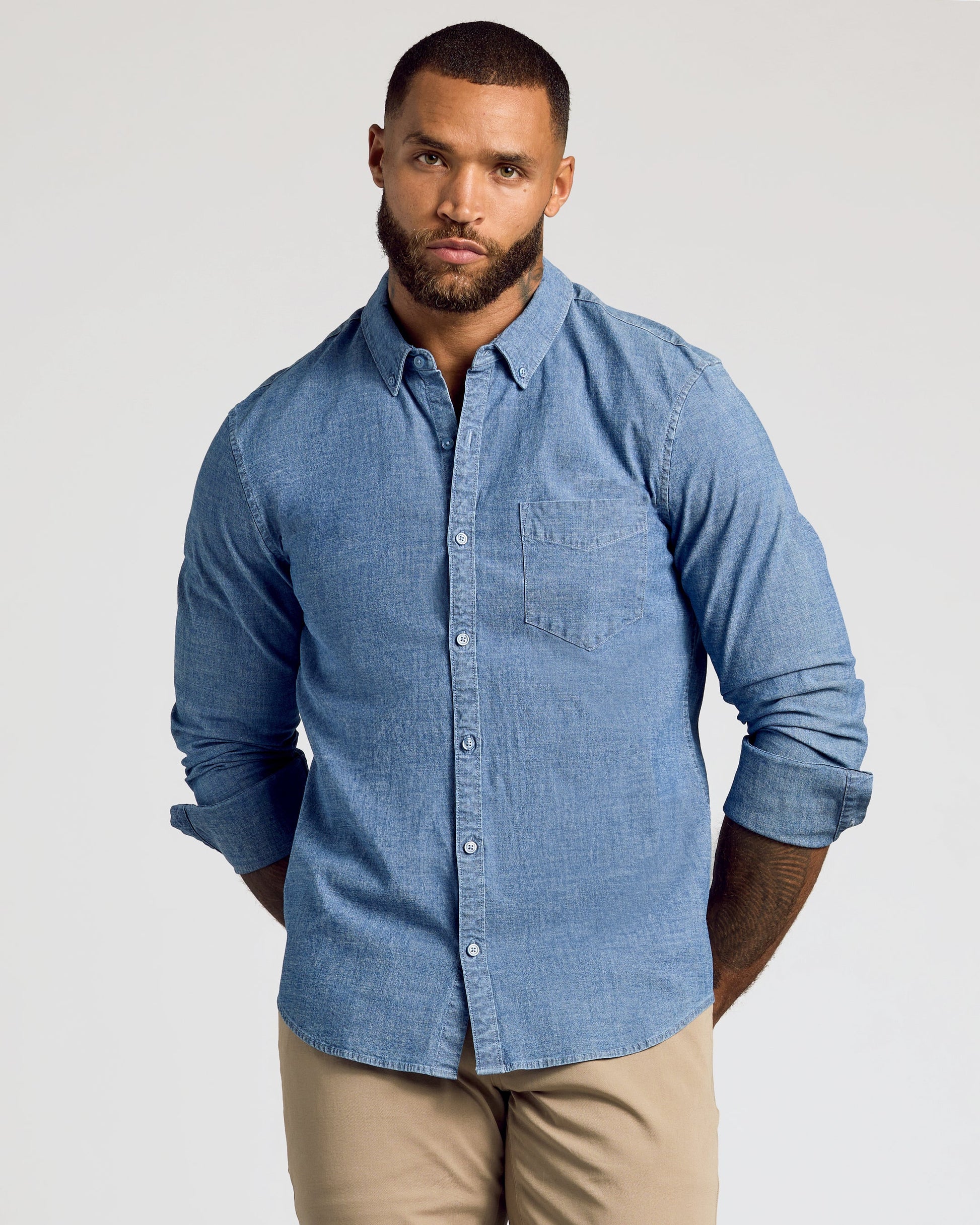 Long Sleeve Stretch Chambray Shirt 3-Pack