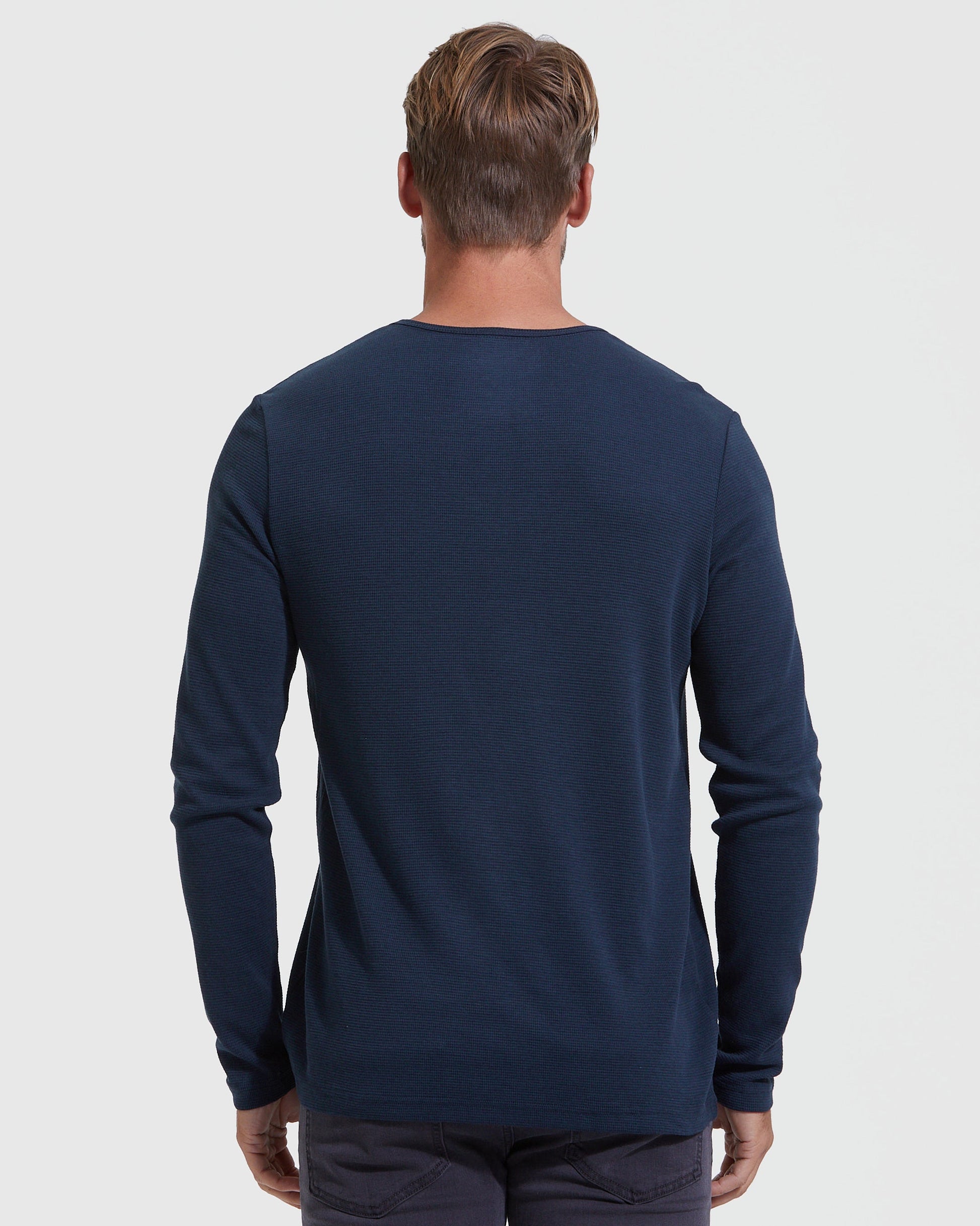 Navy Waffle Long Sleeve Henley